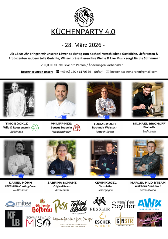 Bei unseren jährlichen Küchenpartys zaubern verschiedene Gastköche, Lieferanten und Produzenten tolle Gerichte, Winzer präsentieren Ihre Weine und Live-Musik sorgt für die Stimmung